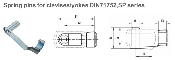 Federklappbolzen (für Gabelköpfe DIN71752/ISO8140), SP -serie | |||||||||